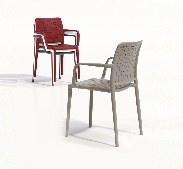 Fame, with its singular, simple shape, Fame chair brings efficiency and customization together in unique weave pattern combination. Comfortable, lightweight, stackable, formally refined in every detail. Stackable chair made of polypropylene reinforced with fibre glass, suitable for outdoor use. Perfectly fits in profesional areas and in residental purposes.