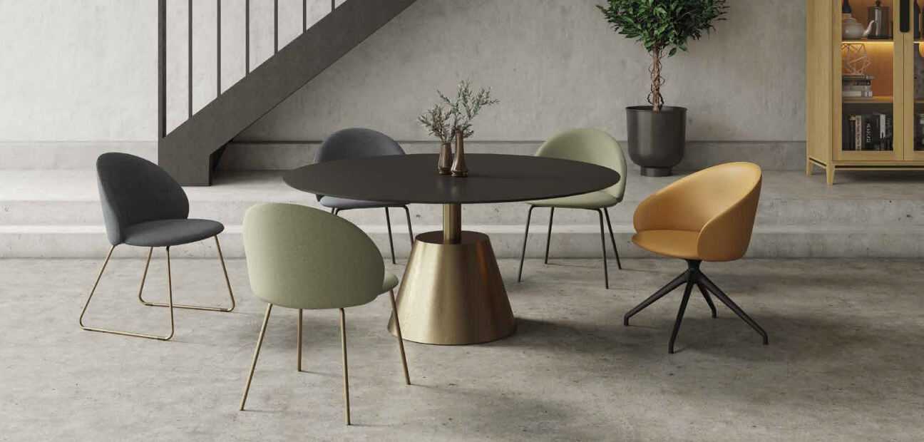 High quality upholstered shell becomes design object for hotels, cafes and restaurants. By matching different leg and fabric variations you can choose your own style. Glera is the new enriched collection for indoors.