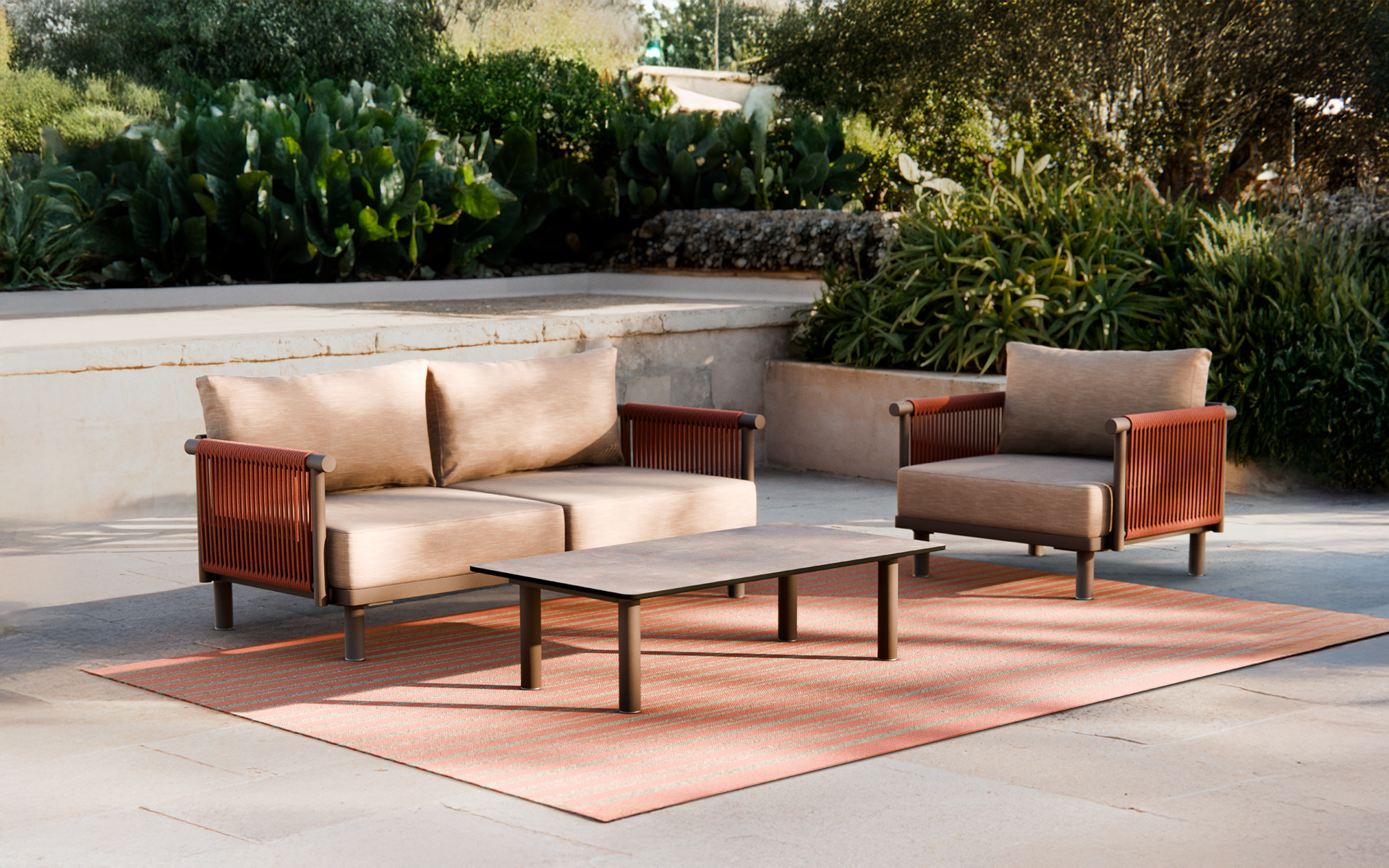 Breeze offer privileged outdoor experience with its high-performance technical details. The luxurious for created by natural-looking woven ropes is complemented by ergonomic cushions with mesh fabric. The collection, which has extra durability thanks to its corrosion-resistant metal body, has been carefully designed for maximum comfort. You can complete your combination with a coffee table consisting of a reinforced metal profile and a high-quality compact table.